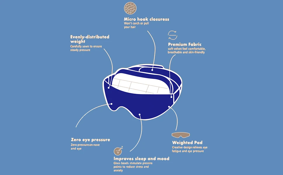 this eye mask is a high quality cotton eye mask plus non-toxic and hypoallergenic glass beads to stimulate deep sleep.